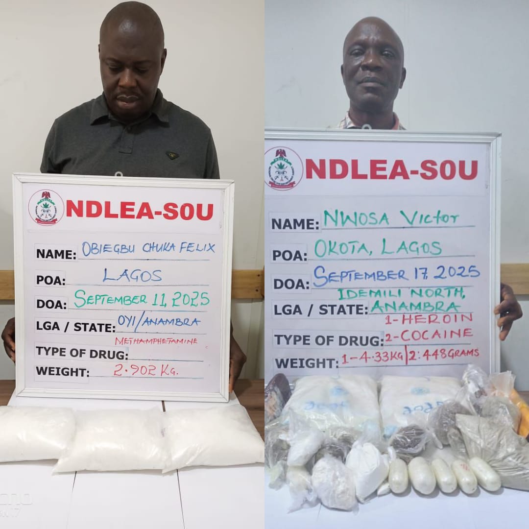 Two drug kingpins arrested with consignments of cocaine, heroin, meth in Lagos . As NDLEA intercepts 3 bandits’ suppliers with…