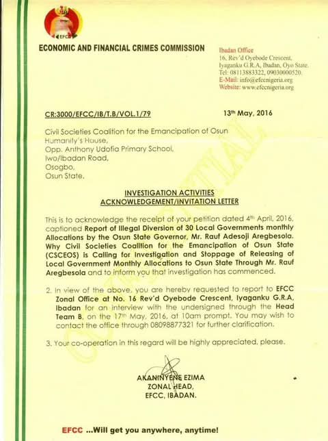 But to dismay of the civil rights group,the anti- graft agency turn deaf hear after the group leadership had written the statement at the Zonal office of the agency in Ibadan,the Oyo State Capital to adopt the petition for beginning of the prosecution of Aregbesola over the alleged financial crime totalling over N600 billion.