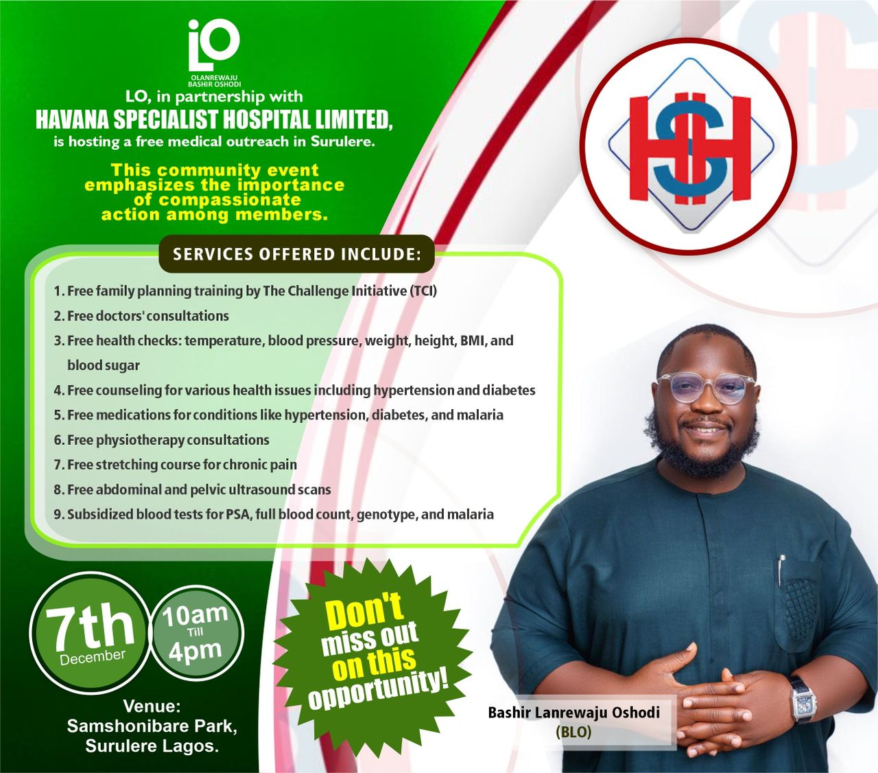 APC Chieftain, Olanrewaju Bashir Oshodi Begins Free Medical Outreach in Surulere