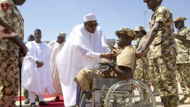 In Borno, Buhari promises to support families of dead and wounded soldiers