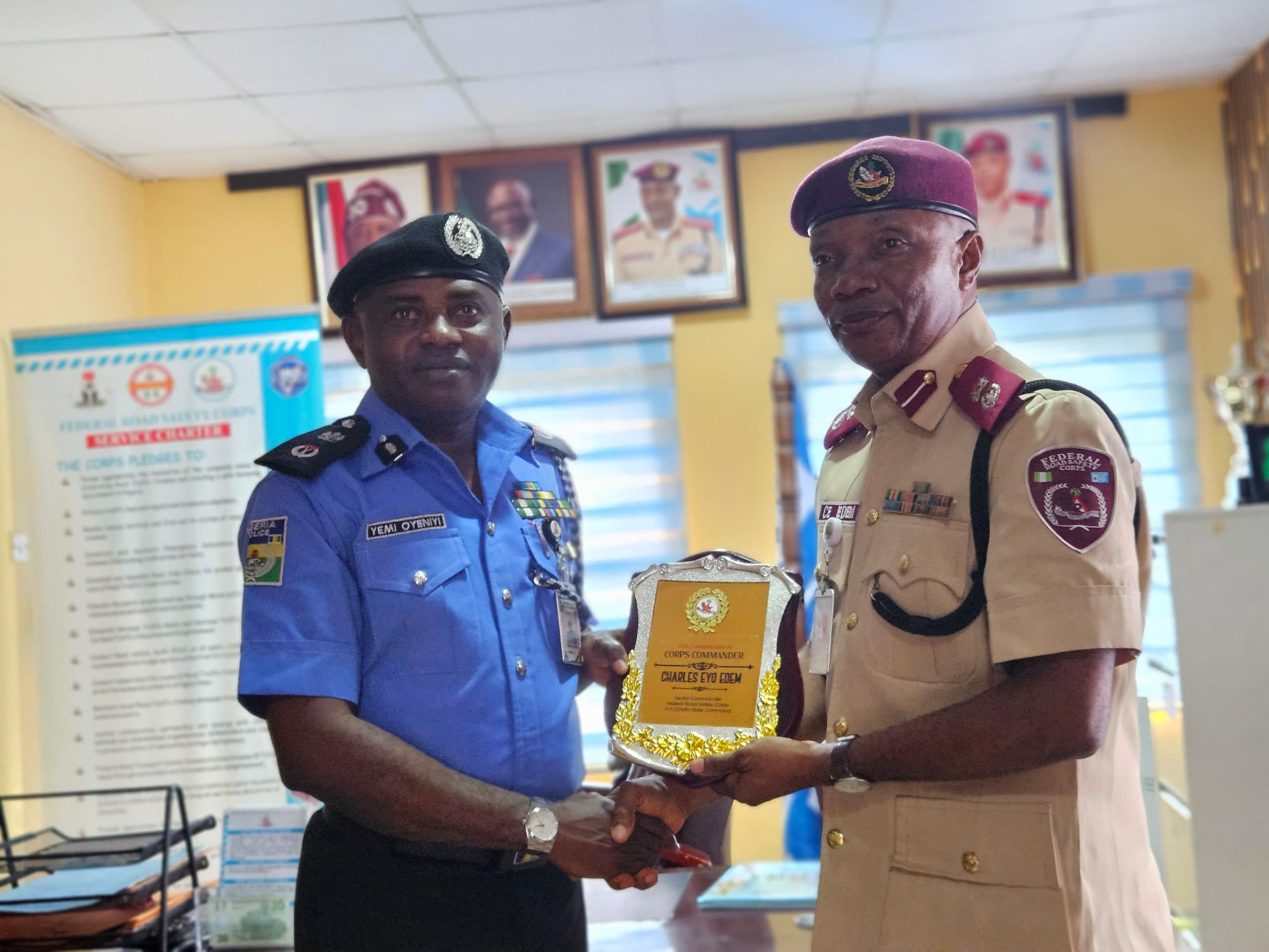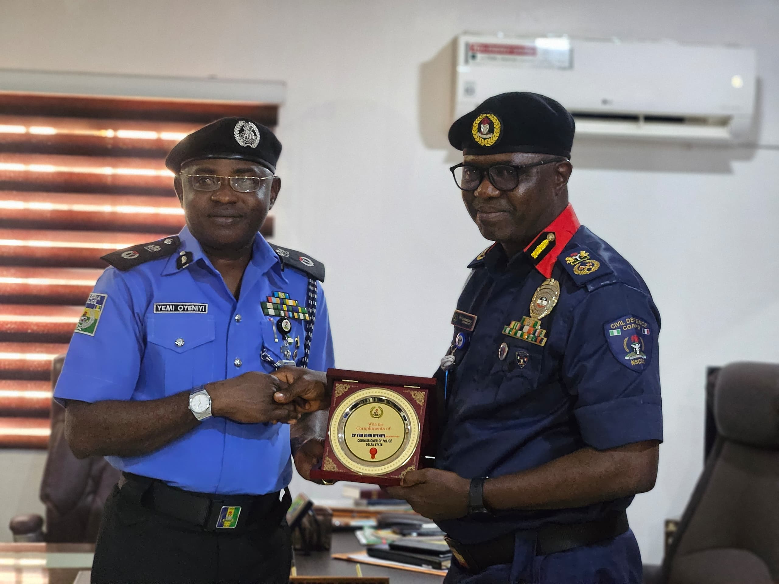 In a continued effort to deepen inter-agency synergy and enhance the overall security architecture of Delta State, the Commissioner of Police, Delta State Command, CP Yemi Oyeniyi, psc, acipm, mnips, alongside members of the Command Management Team, paid courtesy visits to the Federal Road Safety Corps (FRSC) and the Nigeria Security and Civil Defence Corps (NSCDC).