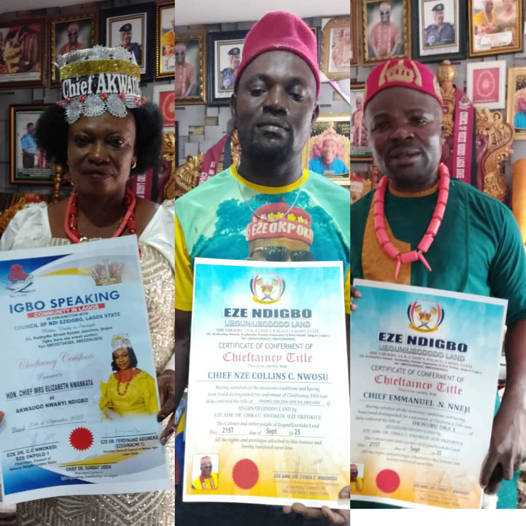 In appreciation, Nze Collins Nwosu (Onowu Obi Udo) praised Eze Chika Nwokedi for seeing him as deserving and bestowing a chieftaincy title. With the certificate in hand, he said he will make sure that peace and togetherness remain his guiding principles and help the Ndigbo community in Lagos State flourish.