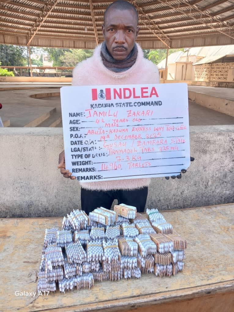 A total of 405kg skunk was seized when NDLEA operatives raided Owena/Ijesha forest in Osun state where a suspect Charles James, 45, was nabbed on Friday 19th December, while another suspect Jamilu Zakari, 42, was arrested with 14,960 pills of tramadol 225mg at tollgate, along Abuja – Kaduna highway same day. The consignment of opioids was concealed in two kolanut sacks (huhun goro) coming from Abuja to Gusau, Zamfara state.