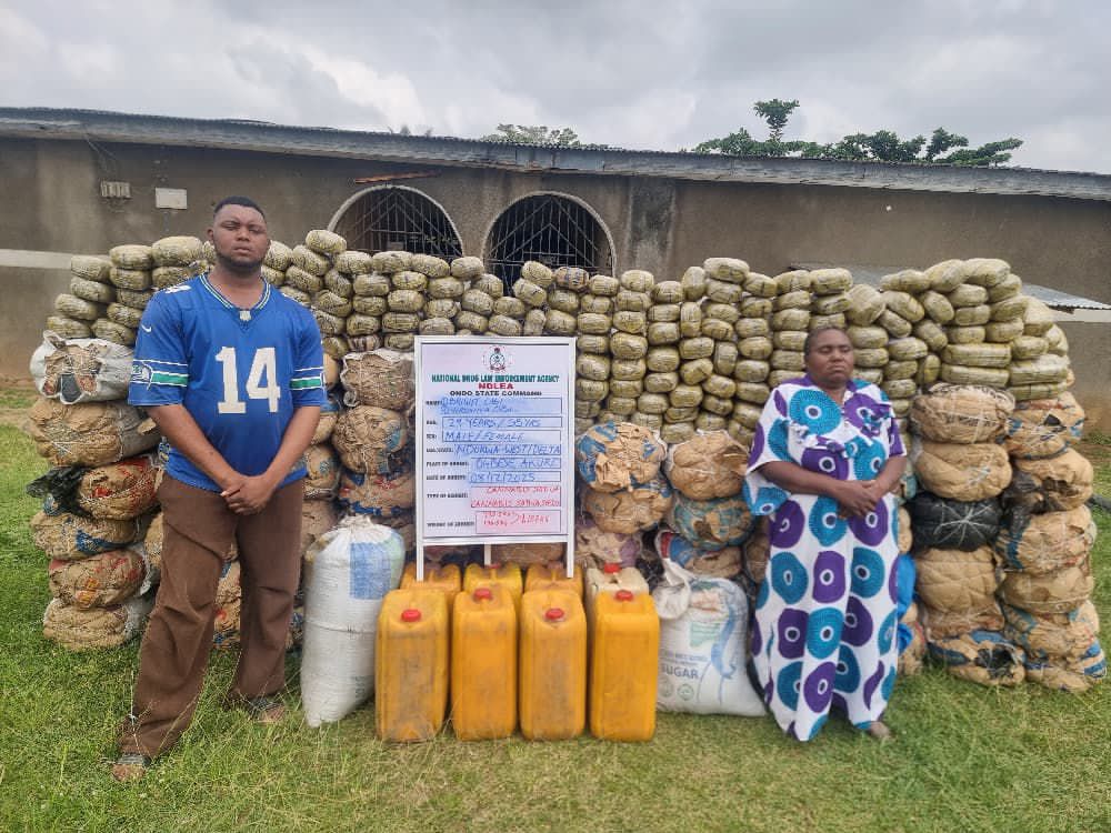 In Ondo state, NDLEA officers acting on credible intelligence on Monday 10th December raided a compound in Ogbese, Akure North local government area, where they arrested a 55-year-old woman Veronica Obi and her 29-year-old son Bright Obi, and recovered 1,187 kilograms of skunk and its seeds from them.