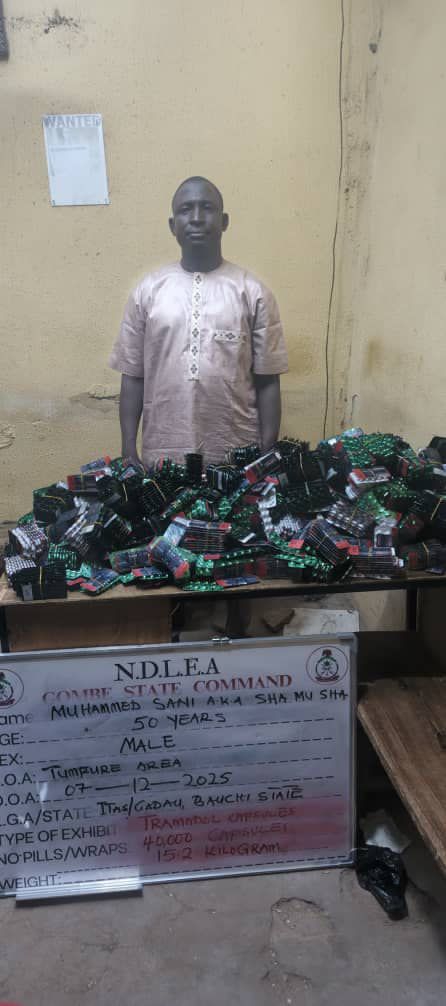 In Gombe state, a suspect Muhammed Sani (alias Sha-Mu-Sha), 50, was arrested with 40,000 capsules of tramadol at Tunfure area, Gombe, while two other suspects: Muhammad Abdullahi (a.k.a Sakalala), 52, and Muhammed Hamza (a.k.a Mamman), 32, were nabbed at Ashaka Jalingo, with 56kg skunk on Monday 8th December.
