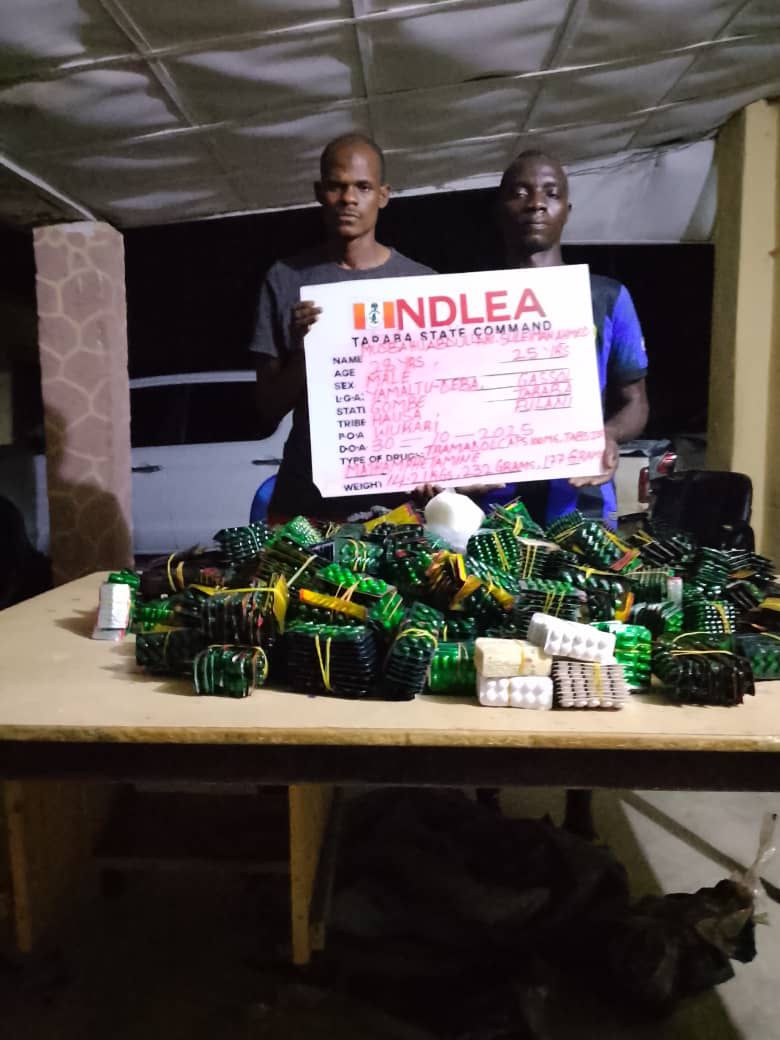 No less than 76.5 litres of skuchies, a mixture of black currant, skunk and opioids were seized from a suspect Ige Oluwale, 50, who was arrested by NDLEA officers at Ibereko, Bagadry, Lagos on Friday 31st October, while a total of 30,370 pills of tramadol and 177 grams of methamphetamine were recovered from the duo of Musbahu Abdullahi, 28; and Saleiman Ahmed, 25, following their arrest at Wukari, Taraba state by operatives on Thursday 30th October when they were conveying the drugs from Onitsha, Anambra state to Yola, Adamawa state.