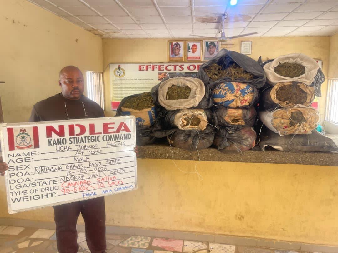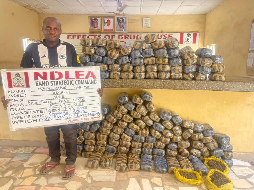 In Kano, NDLEA operatives on Wednesday 18th March arrested a suspect Abdulkadir Mamuda, 35, with 102.5kg skunk at Dan-Tsalle, while another suspect Uche Johnson Festus, 47, was nabbed same day at Naibawa Gabas, with 95.5kg of same psychoactive substance.