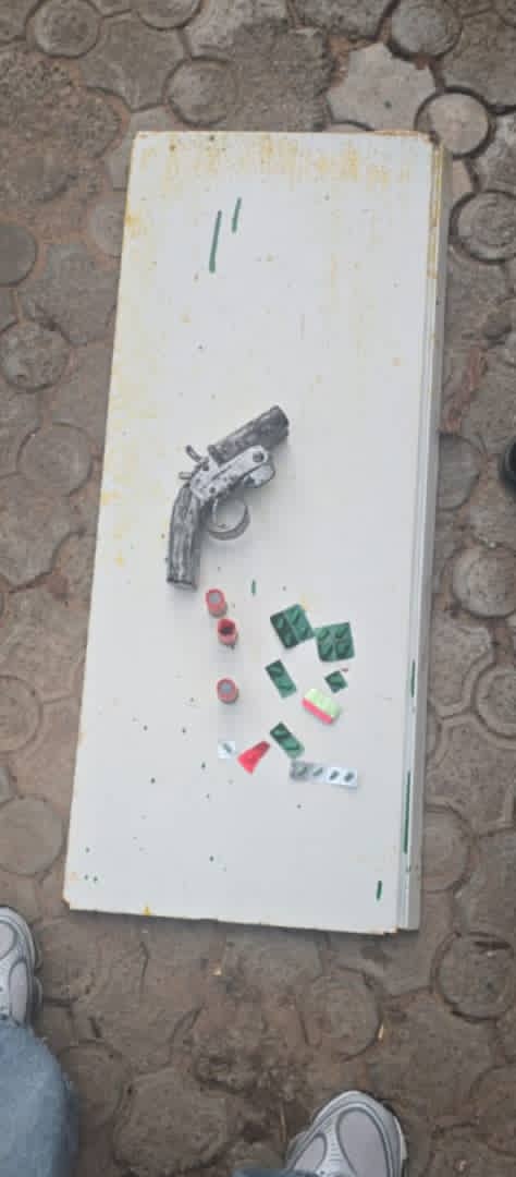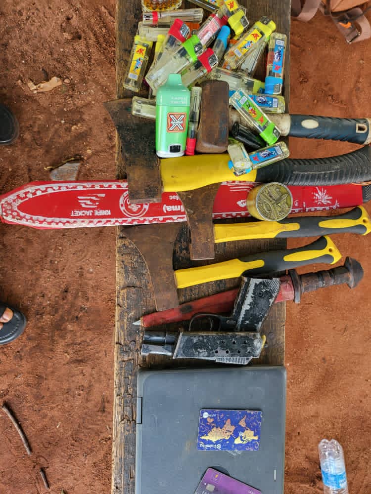 The operation led to the arrest of three suspects, including a female. A search conducted at the premises resulted in the recovery of one English-made Beretta pistol with one round of live ammunition, three battle axes, one hammer, one cutlass, and thirty-nine firelighters. The suspects are in custody, while efforts are ongoing to arrest the fleeing suspect.