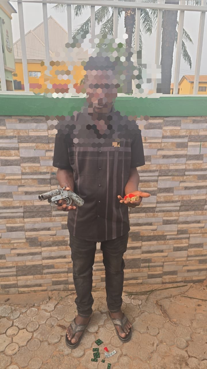 On 11 April 2026 at about 1145hrs, operatives of Delta Shield, while on surveillance patrol at Orerokpe, Okpe Local Government Area, intercepted one Peter Onajite ‘M’, aged 32 years. A search conducted on the suspect led to the recovery of one locally made double barrel cut-to-size pistol, two live cartridges, one expended cartridge, as well as sachets of suspected Tramadol.